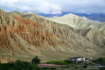 Głęboko w Himalajach, w cieniu masywów Annapurny i Dhaulagiri przy granicy z Tybetem leży ukryte od reszty świata stare buddyjskie królestwo Mustang, które obecnie jest dystryktem Nepalu, ale dalej zachowało swą tybetańską kulturę ludu Lobo i średniowieczne klimaty. Powędrujemy starym handlowym szlakiem wzdłuż rzeki Kali Gandaki, którym ciągnęły niegdyś karawany do Tybetu. Przez Dolny Mustang ze stolicą w Jomsom od dawna prowadzi popularny szlak trekkingowy Dookoła Annapurny, zaś Górny Mustang dostępny dla turystów jest dopiero od 1992 roku. Szlak do Lo Manthangu (stolicy Górnego Mustangu) prowadzi przez pustynne góry, głębokie malownicze wąwozy, wśród fantazyjnie wyrzeźbionych przez naturę formacji skalnych o niezwykłych barwach. Często widnieją w nich wykute w skałach jaskinie.