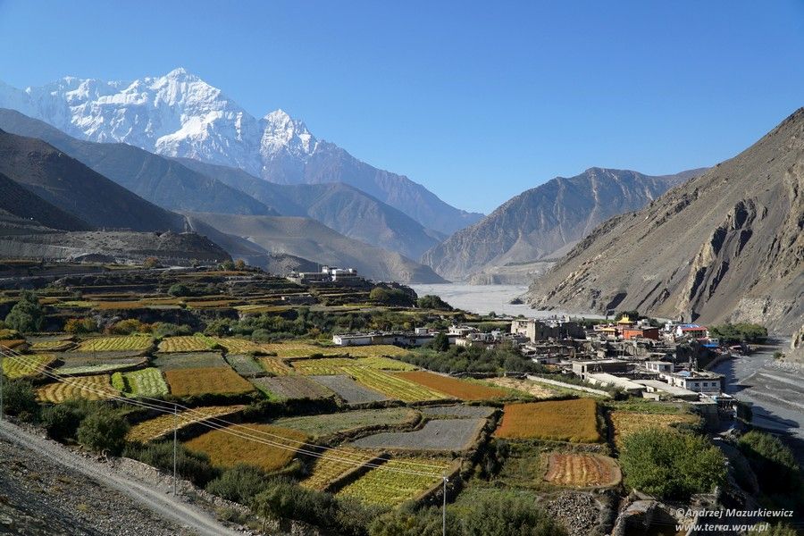 Głęboko w Himalajach, w cieniu masywów Annapurny i Dhaulagiri przy granicy z Tybetem leży ukryte od reszty świata stare buddyjskie królestwo Mustang, które obecnie jest dystryktem Nepalu, ale dalej zachowało swą tybetańską kulturę ludu Lobo i średniowieczne klimaty. Powędrujemy starym handlowym szlakiem wzdłuż rzeki Kali Gandaki, którym ciągnęły niegdyś karawany do Tybetu. Przez Dolny Mustang ze stolicą w Jomsom od dawna prowadzi popularny szlak trekkingowy Dookoła Annapurny, zaś Górny Mustang dostępny dla turystów jest dopiero od 1992 roku. Szlak do Lo Manthangu (stolicy Górnego Mustangu) prowadzi przez pustynne góry, głębokie malownicze wąwozy, wśród fantazyjnie wyrzeźbionych przez naturę formacji skalnych o niezwykłych barwach. Często widnieją w nich wykute w skałach jaskinie.