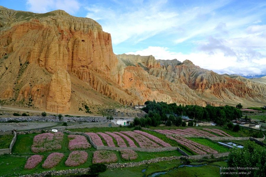 Wędrując mijamy charakterystyczne czorteny w kolorze ochry a w wioskach podziwiamy buddyjskie klasztory. W średniowiecznym otoczonym murami mieście Lo Manthang będziemy obserwować bardzo ważne święto Tiji. Wtedy przed starym pałacem królewskim mnisi przebrani w maski tańcząc odgrywają historię walki ze złym demonem, który zostaje pokonany przez legendarnego Dorje Jono.